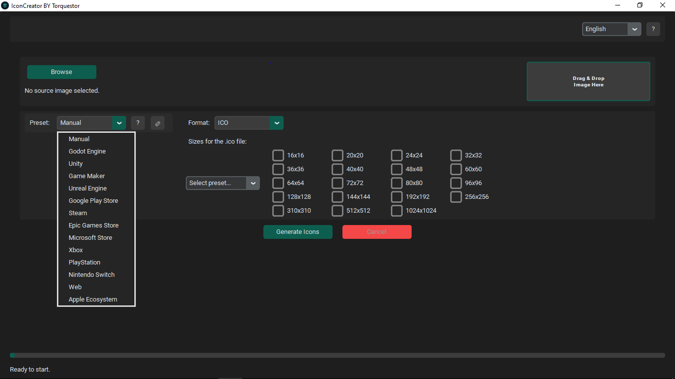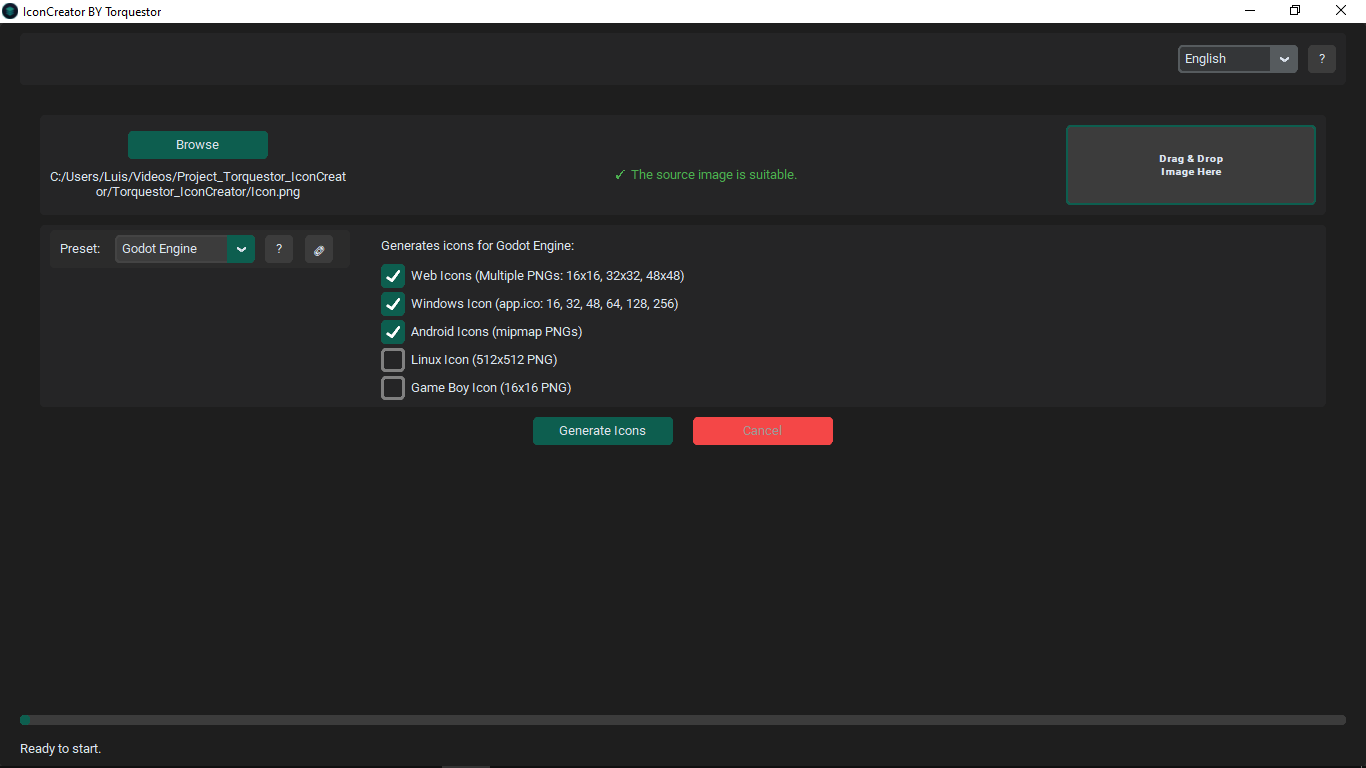 Torquestor IconCreator automates icon exporting for Godot, Steam, PlayStation, and more. The tool generates every required file by automatically applying the correct sizes, formats, and names for each platform. Just import and download.